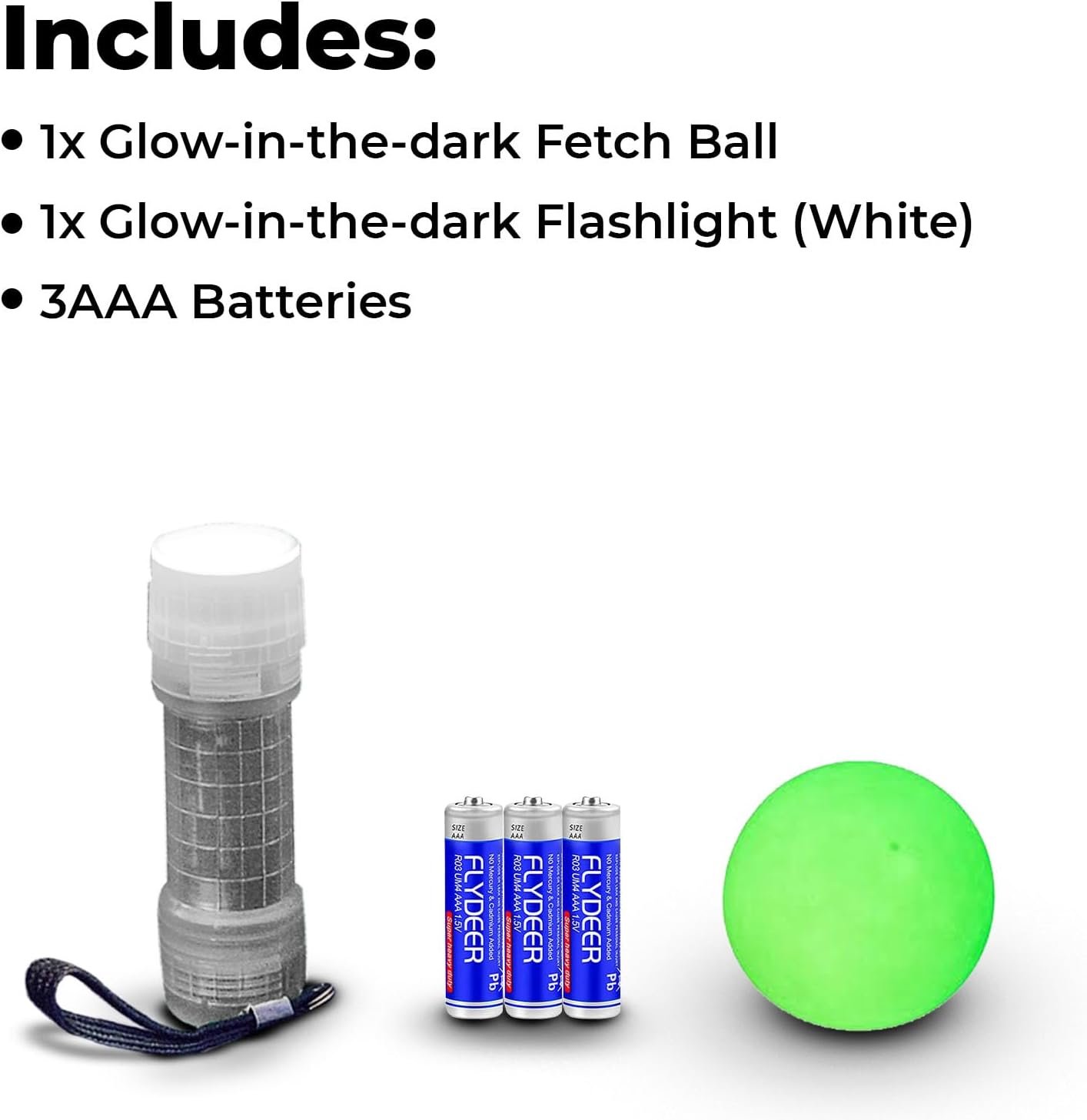 - Complete Pet Playtime Set: This all-in-one adventure kit includes a glow-in-the-dark ball, a compact white flashlight, and 3 AAA batteries, providing everything needed for hours of outdoor fun and nighttime adventures with your pet.