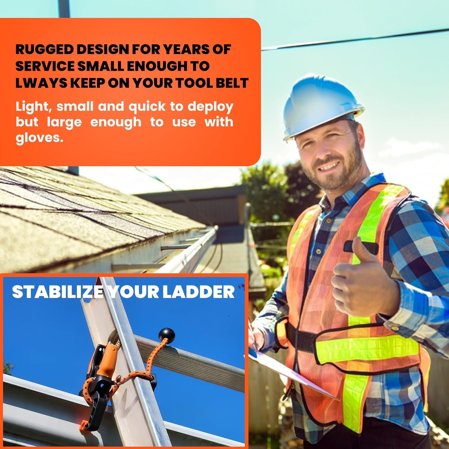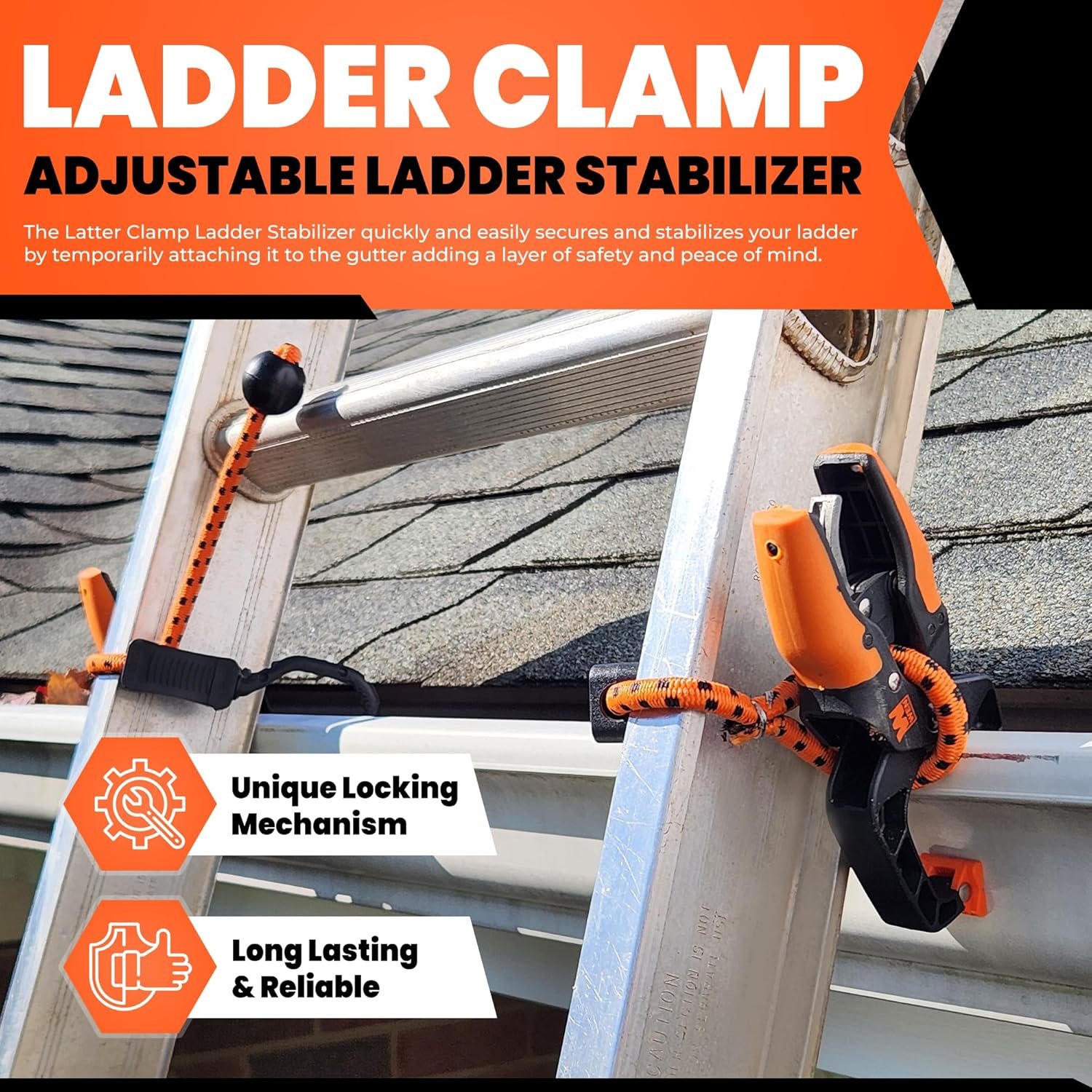 Holden USA – Ladder Clamp – Stabilizer Clip – Secure Safety Clamp for Roof, Gutters, and Wall Prep – Durable Support Cord for Roofing and Gutter Tasks