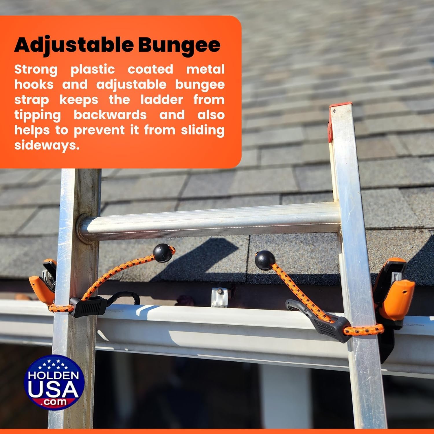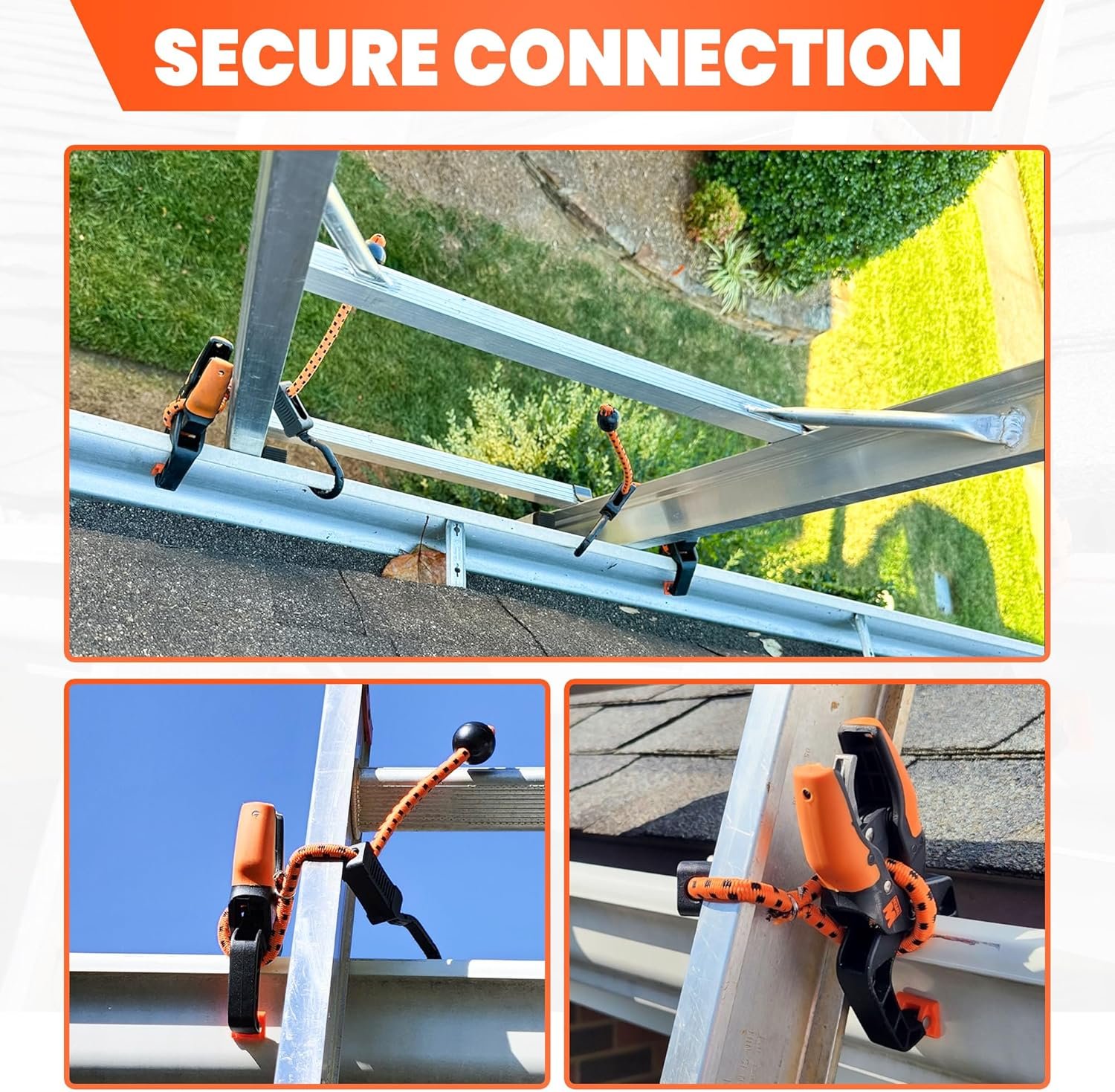 - Versatile Compatibility: Suitable for use with various ladder types and gutter systems, these clamps provide a universal solution for ladder stability. The adjustable Bungee, Hook and Clamps allow for creative solutions to ladder stability