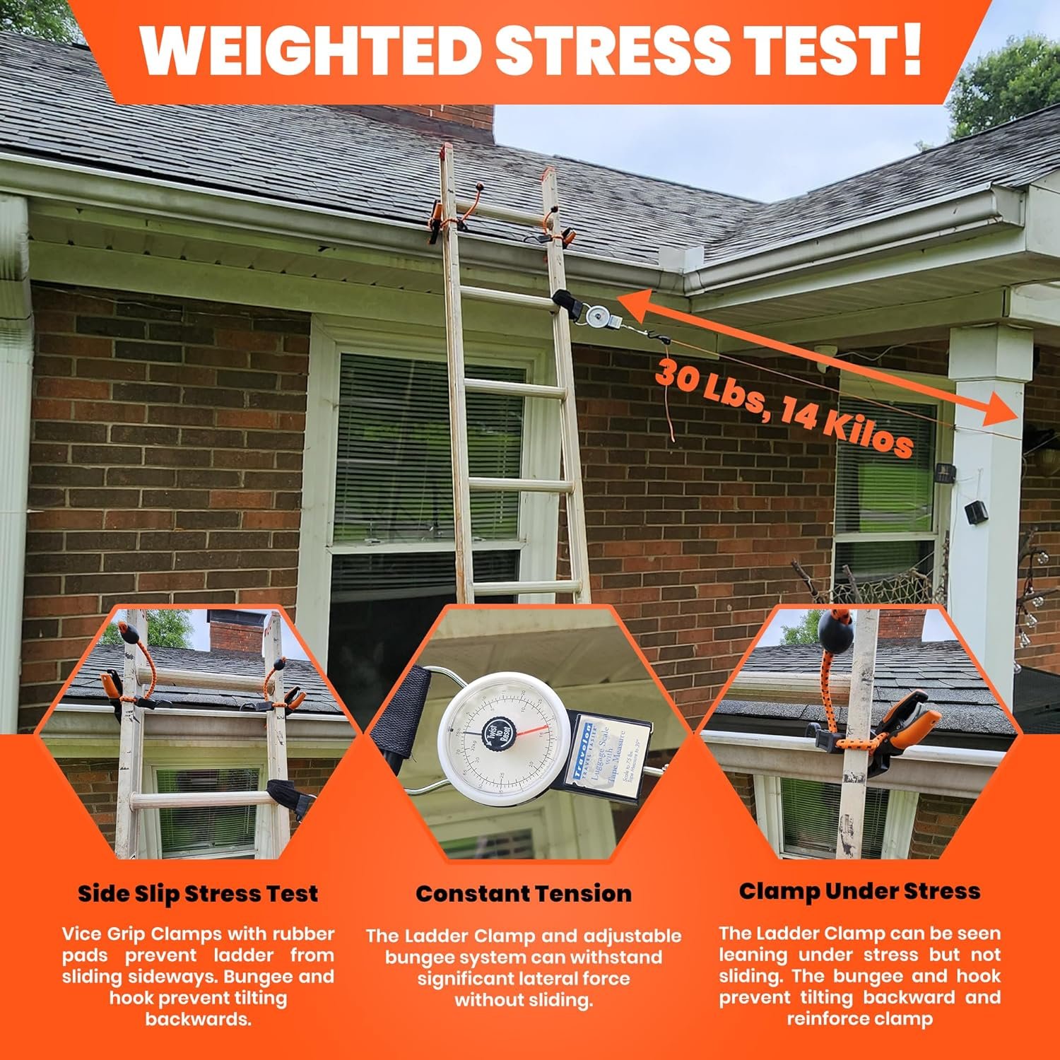 - Gutter Grip Technology: Featuring specialized rubber gutter clips pads, these clamps offer a firm hold on your gutters, preventing ladder movement or slippage and will not damage gutters.